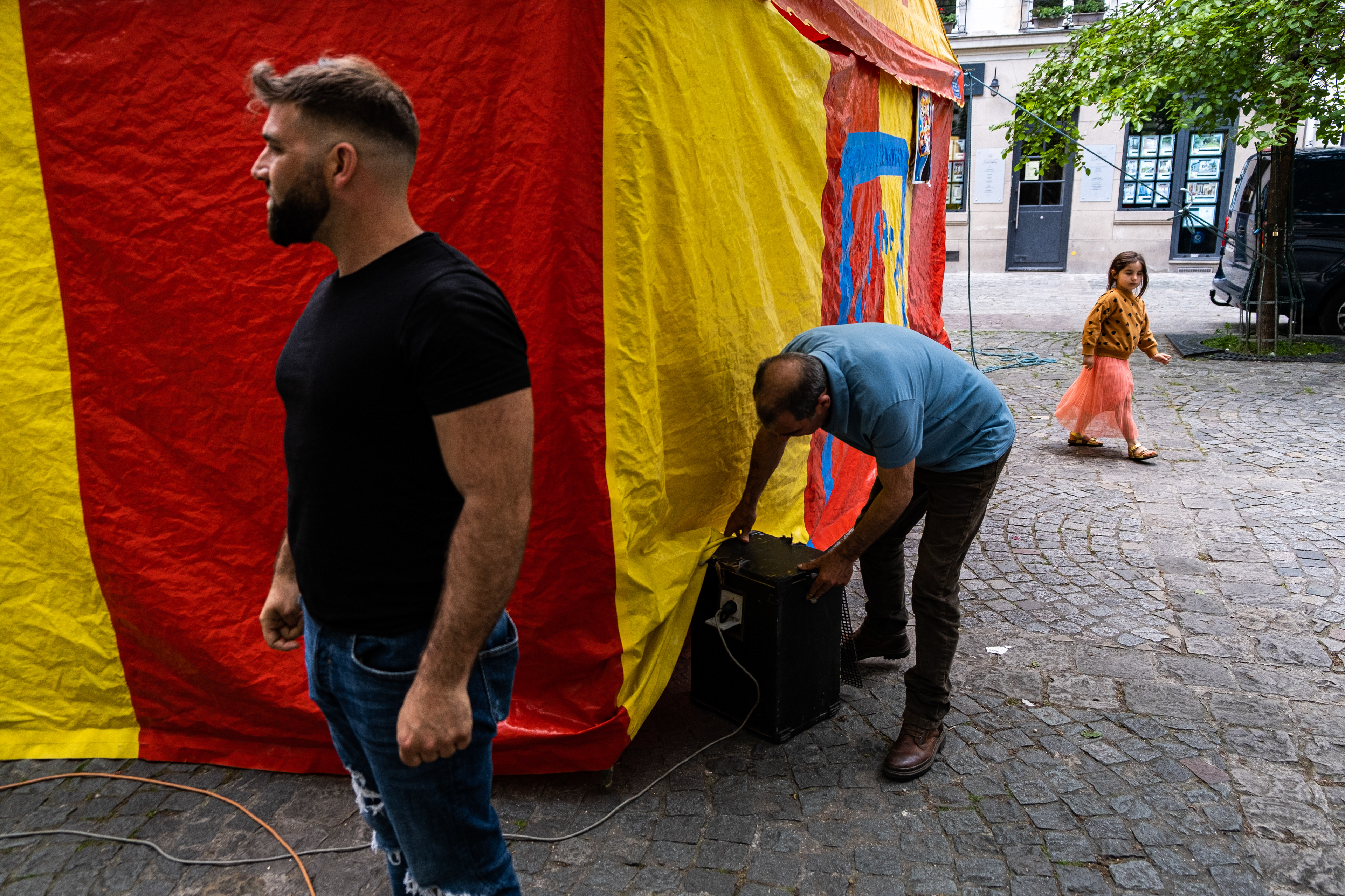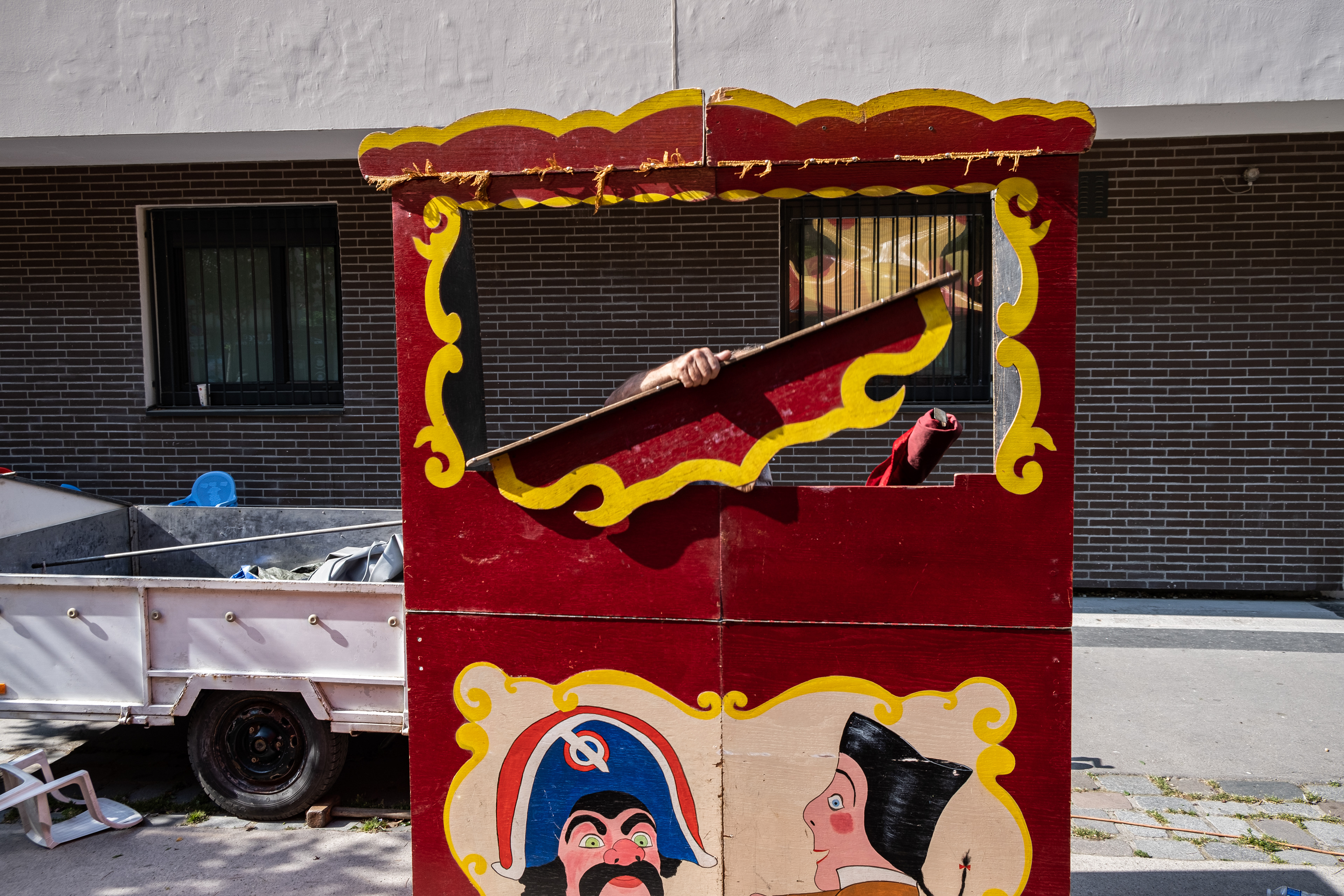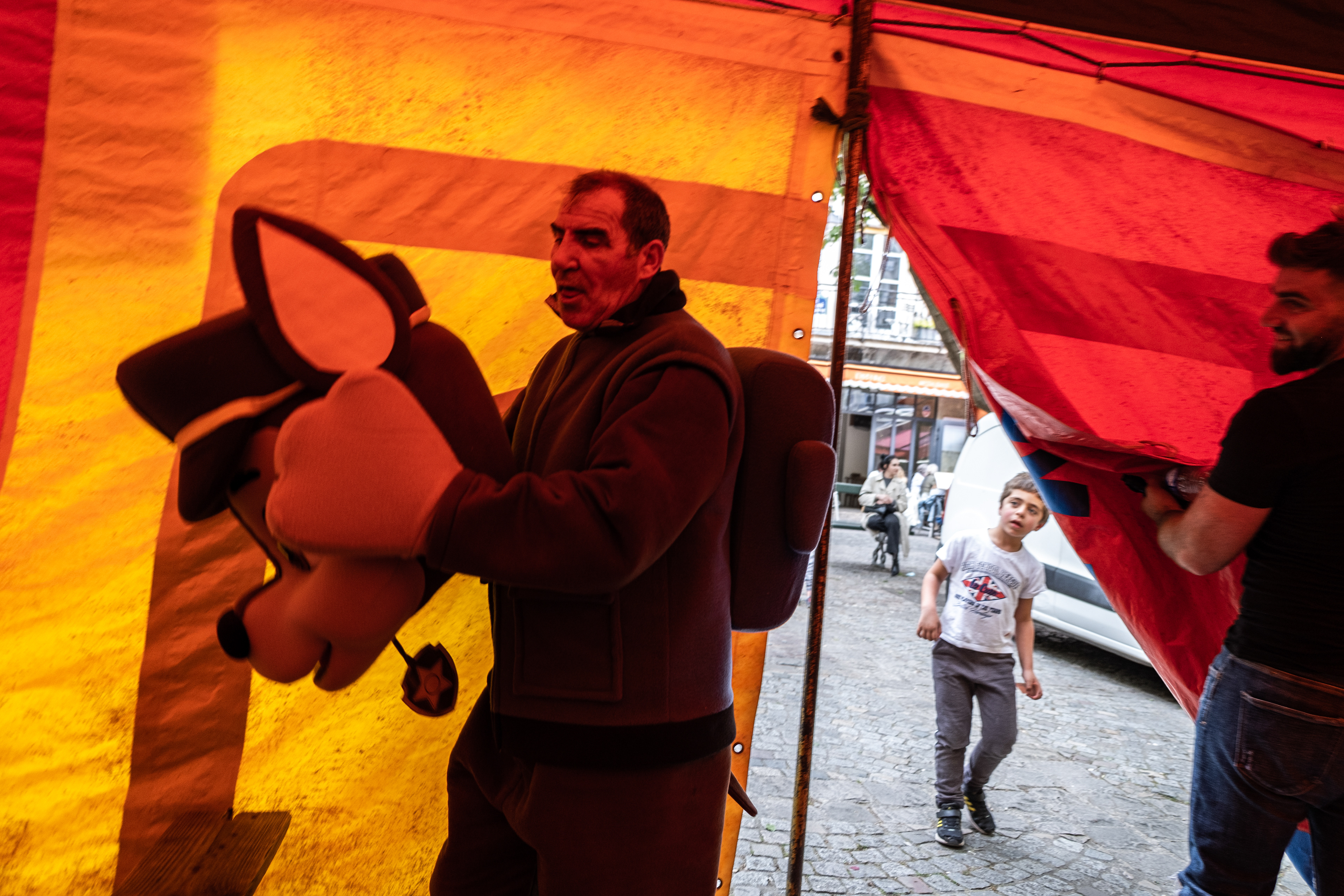 David and his father are part of the Gypsies community and have been going around Paris performing puppet shows for children. David is the puppet master who controls a myriad of different characters such as the famous Guignol. The father puts on a ‘Chase the Dog’ costume to entertain the children after the show.