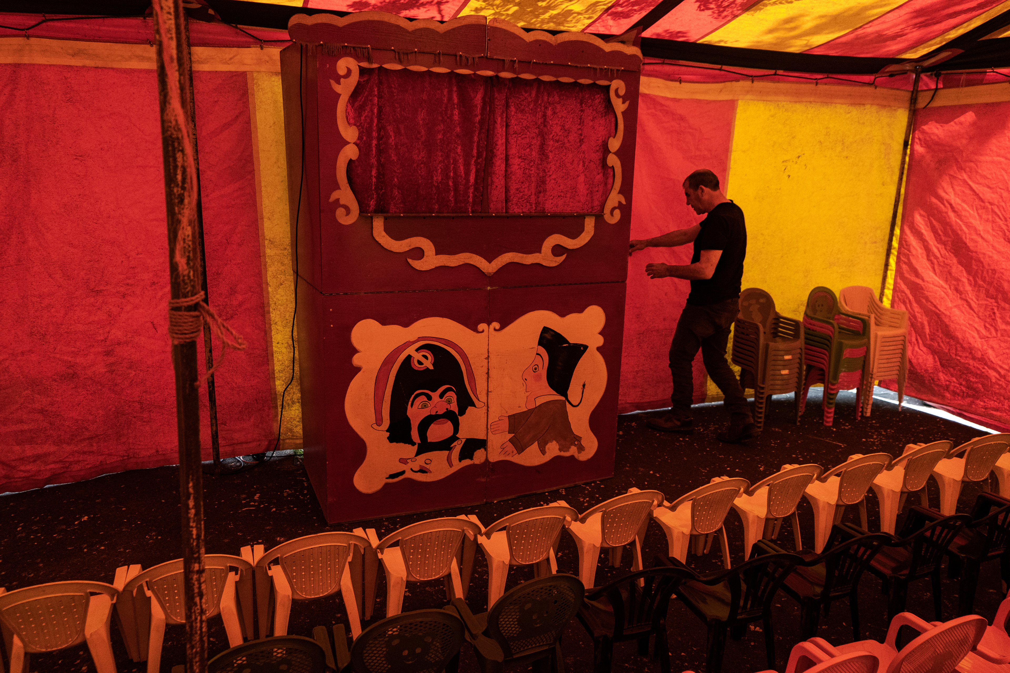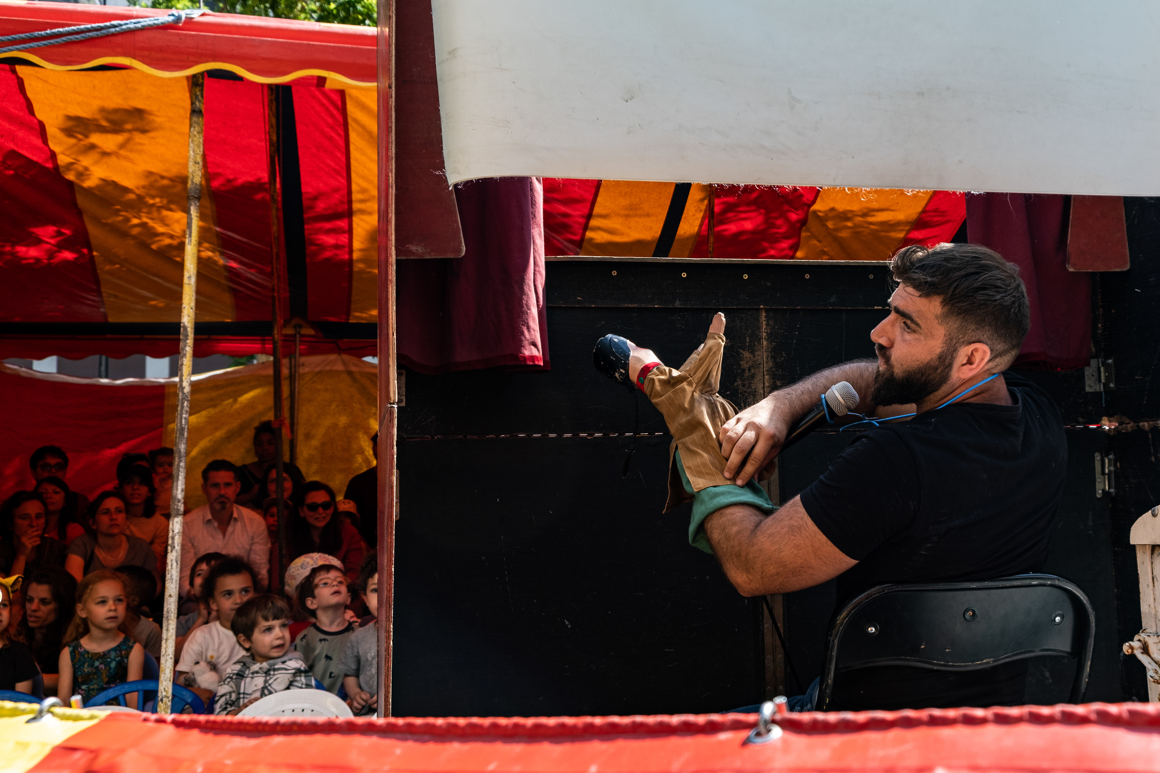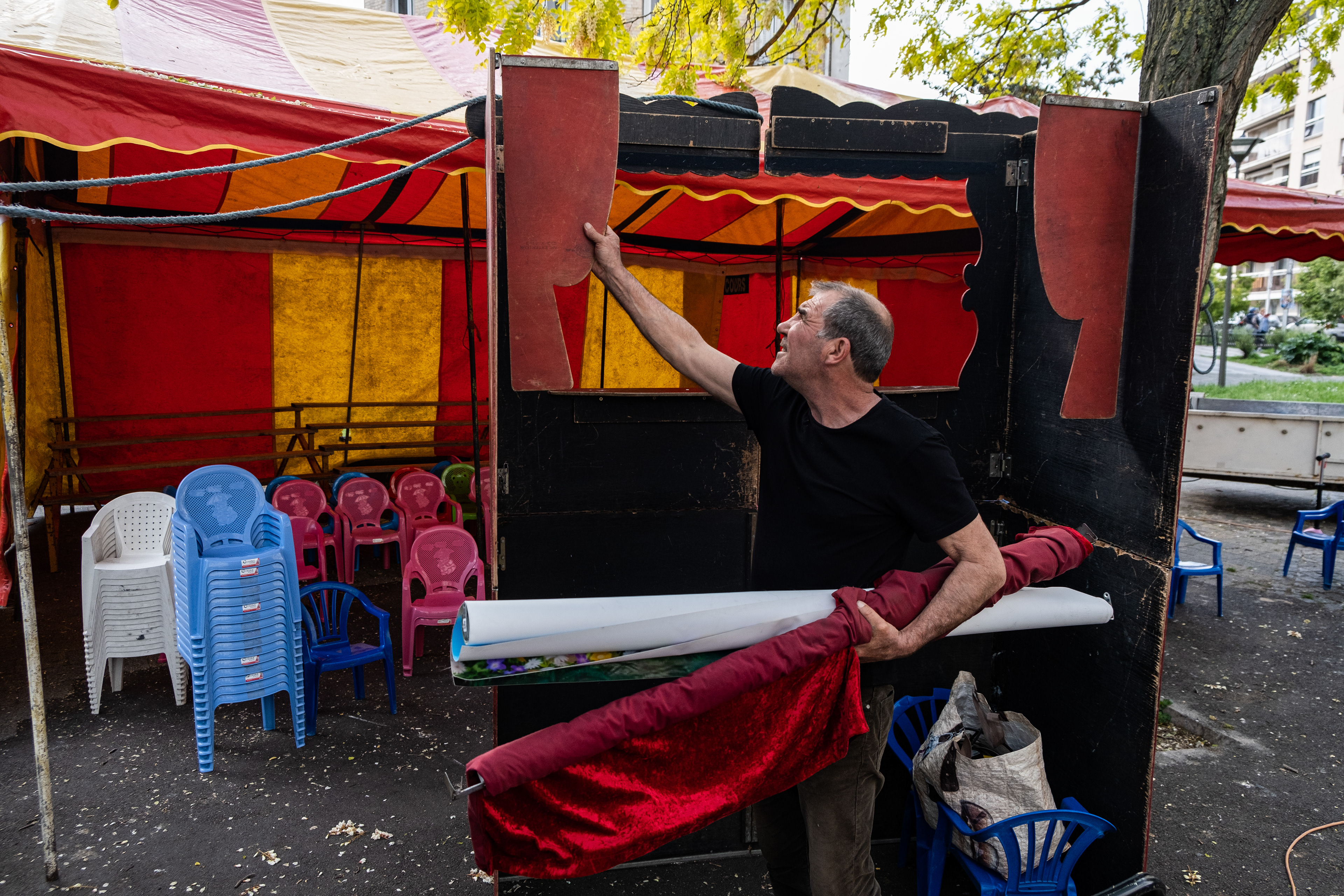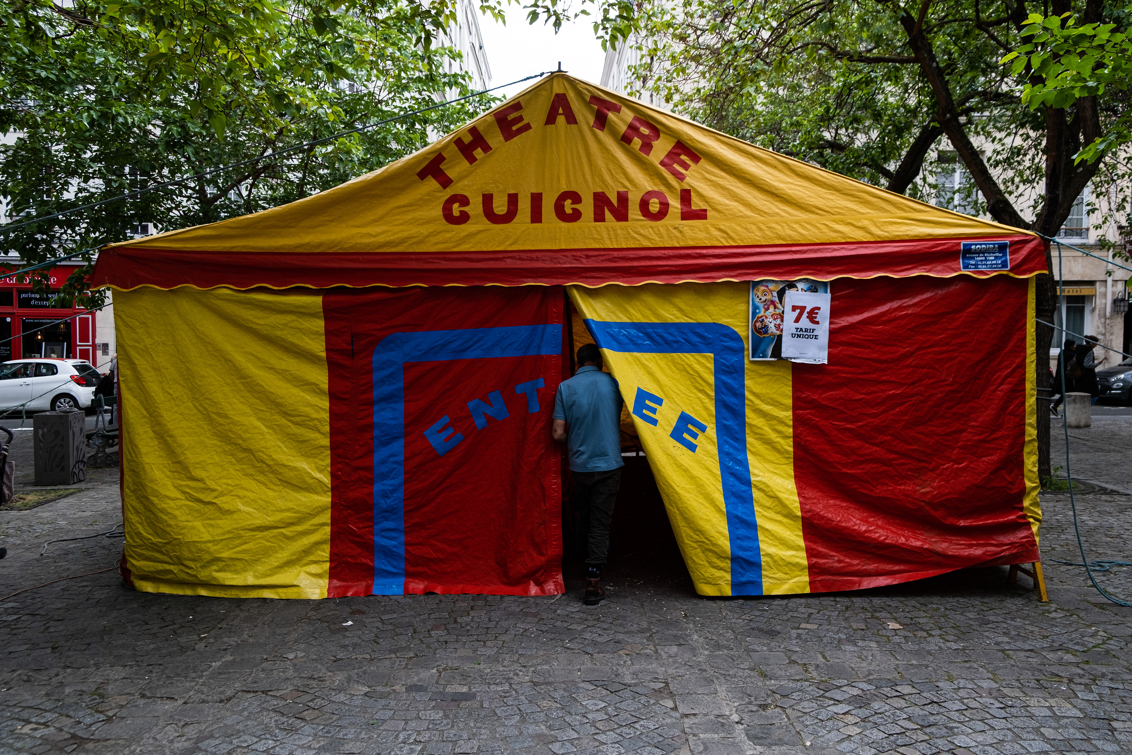 David and his father are part of the Gypsies community and have been going around Paris performing puppet shows for children. David is the puppet master who controls a myriad of different characters such as the famous Guignol. The father puts on a ‘Chase the Dog’ costume to entertain the children after the show.